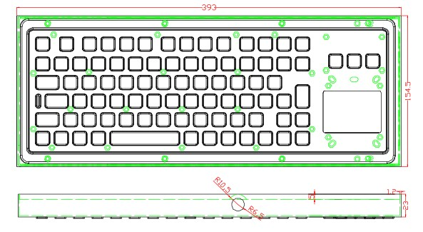 Корпус клавиатуры выполнен из нержавеющей стали, полимерные клавиши с износостойким покрытием. Габаритные размеры 393x155x23 мм, вес 2 кг, серебристый цвет. Настольный монтаж. Ресурс выработки каждой клавиши более 10 миллионов нажатий, общая наработка на отказ (MTBF) = 20 000 часов.