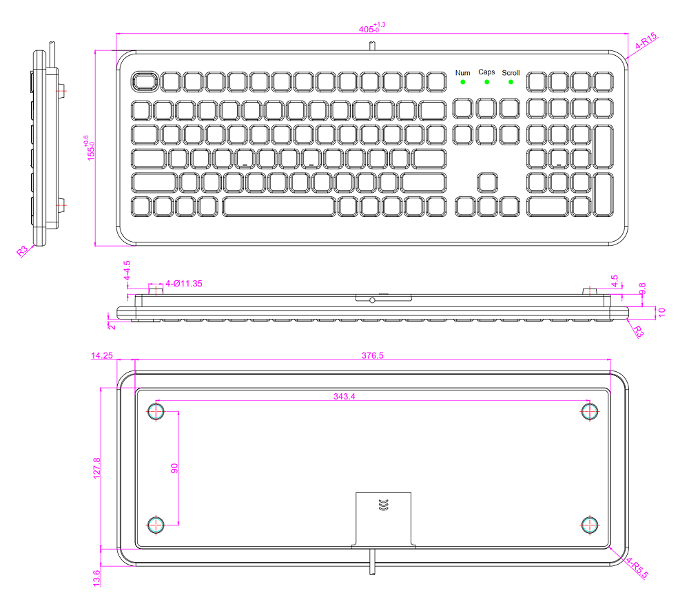 Включает в себя 106 мягких, почти бесшумных клавиши (в том числе NumPad и 12x Fn) с длинным ходом (1.5 мм) и позолоченными карбоновыми контактами ("carbon-on-gold"). Клавиши срабатывают при силе нажатия в 1.2Н. Русская и английская раскладки, светодиодная индикация. Предусмотрена возможность блокировки кнопок для чистки и мытья устройства без отключения от ПК. Подключение через интерфейс USB, кабель длиной 2 метра в комплекте.