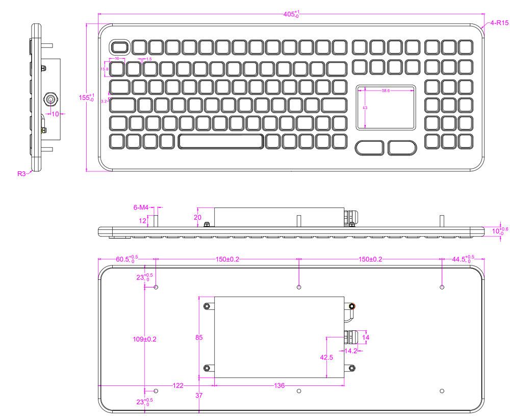 | Тип устройства | промышленная выдвижная клавиатура с тачпадом |