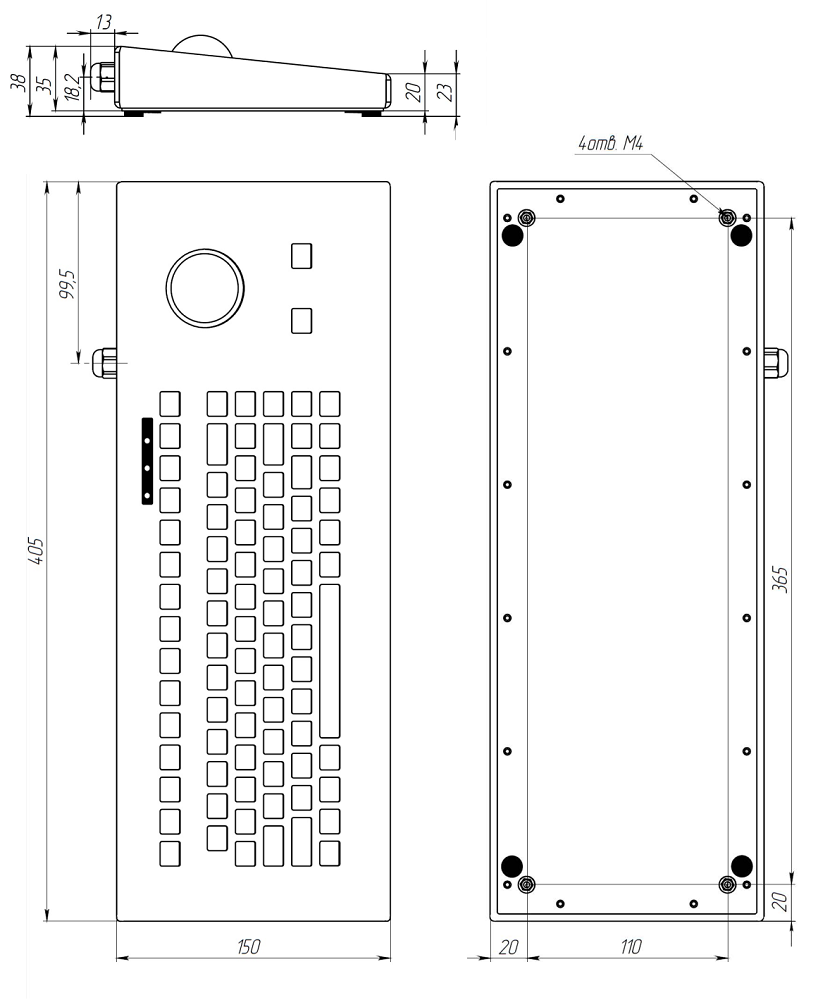 | Тип устройства | промышленная силиконовая клавиатура с трекболом |