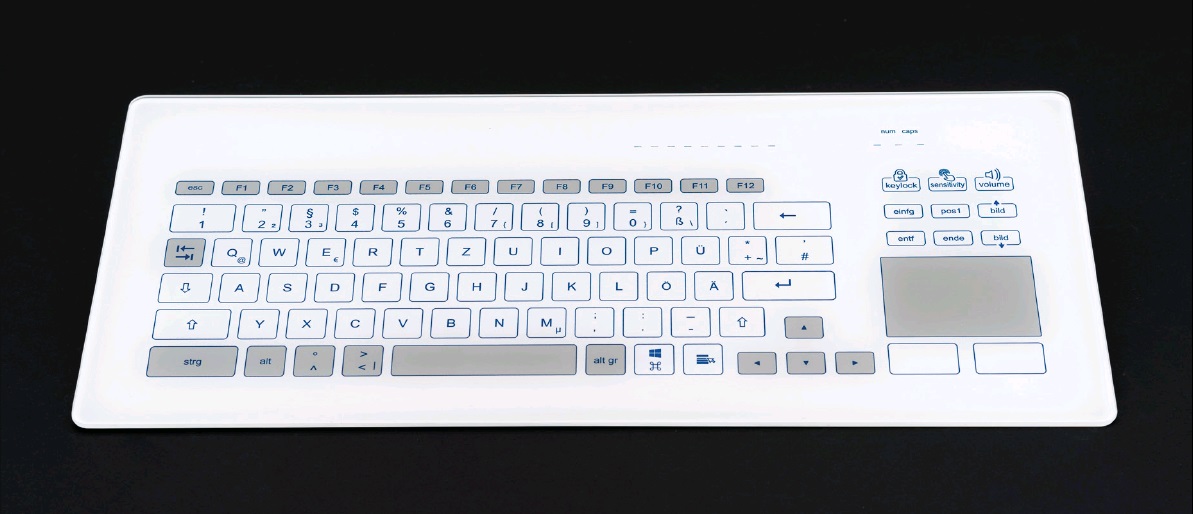 InduKey TKR-086-TOUCH-ADH-USB-US/EU — это промышленная емкостная клавиатура с тачпадом, чья передняя панель выполнена из закаленного стекла. Второй вариант артикула (название модели) KR23241.