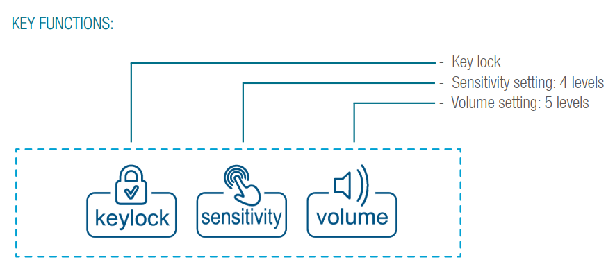 Включает в себя 103 эргономичных клавиши, в том числе три специализированные кнопки, отвечающие за регулировку чувствительности касаний к клавишам (4 уровня), наличие и уровень громкости при печатании (5 левелов), а также клавишу для блокировки срабатывания всех остальных, что необходимо при чистке и/или мытье клавиатуры. Только английская раскладка. Тачпадом является сенсорная емкостная панель с размером площадки 60х42 мм. Светодиодная индикация NumLock, CapsLock, низкого заряда батареи, а также, если требуется чистка клавиатуры.