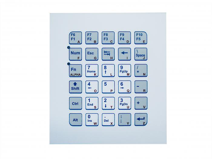 Включает в себя 30 клавиш - цифровые и функциональные - с коротким ходом (0.3 мм), которые срабатывают при силе нажатия в 2.6 Н; английская раскладка. Подключение через разъем USB.