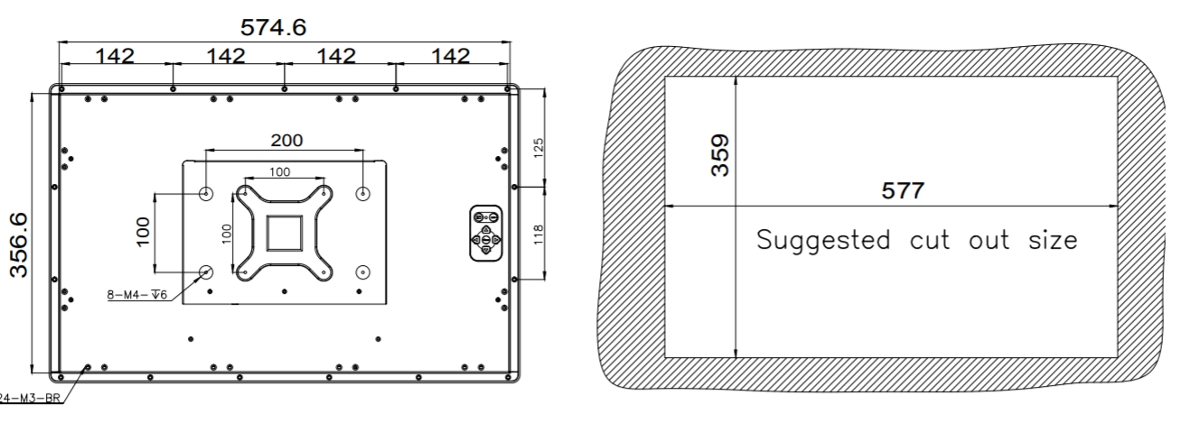 Монитор DM-F24A/PC — это промышленный 23.8-дюймовый дисплей с разрешением Full HD (1920 x 1080), который обеспечивает высокое качество изображения благодаря технологии MVA и яркости 250 кд/м². Он оснащен проекционно-емкостным сенсорным экраном с антибликовым покрытием и защитой IP65 по передней панели, что делает его идеальным для использования в сложных условиях. Монитор поддерживает различные интерфейсы подключения, включая HDMI, DisplayPort и VGA.