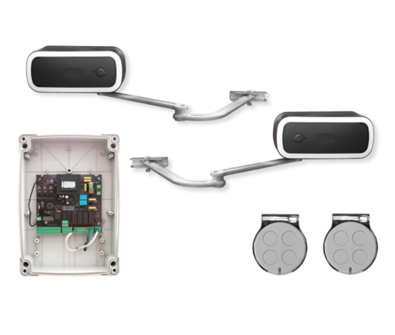 • SKY-ARM1000 привод (2 шт.): мощные и надежные приводы, способные обеспечить плавное и быстрое движение ворот.