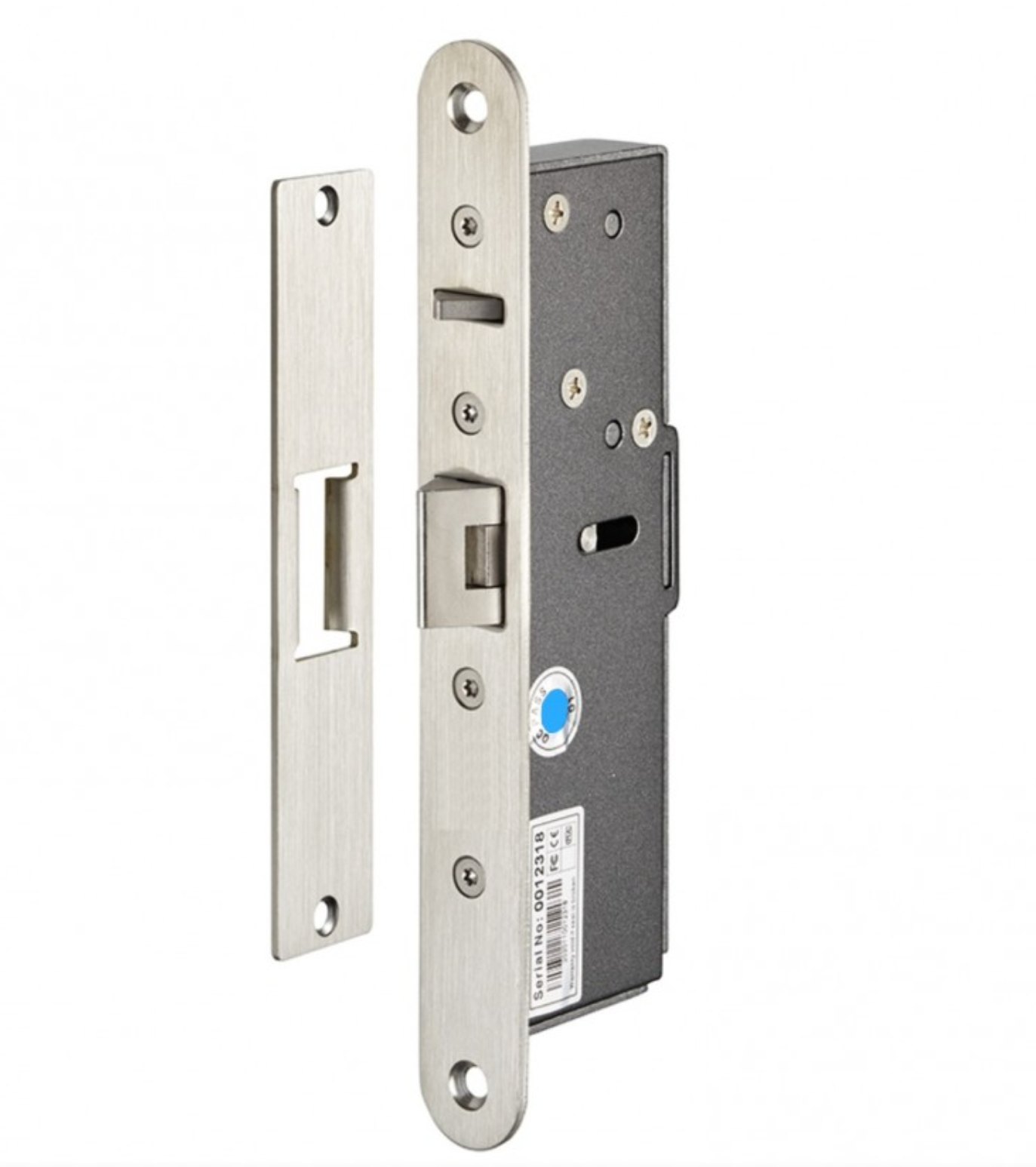 Замок оснащен передней планкой из нержавеющей стали, что обеспечивает долговечность и устойчивость к коррозии. Ригель замка способен выдерживать нагрузку до 450 кг, что подтверждает его надежность и эффективность в условиях интенсивного использования.