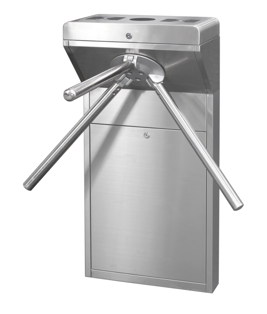 • Конструкция: Турникет выполнен в виде трехштанговой системы, где штанги установлены на шарнирах под углом 120 градусов. В исходном положении одна штанга блокирует проход, а две другие находятся в нижнем положении.