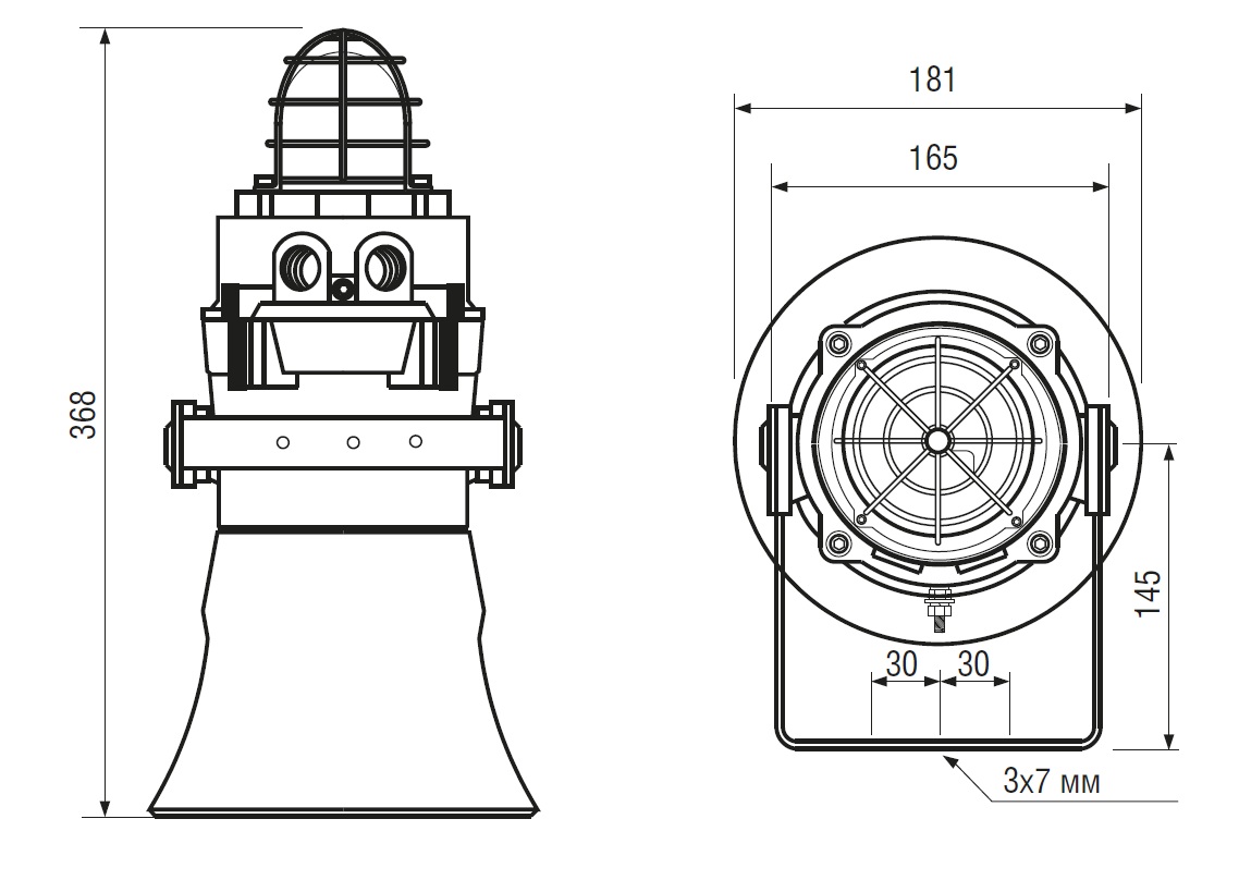 Монтажная скоба выполненная из нержавеющей стали даёт возможность универсальному способу закрепления изделия при монтаже. Корпус прибора изготовленный из алюминия морского исполнения LM6, обработан и окрашен краской порошкового нанесения, что гораздо лучше защищает от воздействий агрессивных сред. Рупор выполняется из пластика типа UL94 V0 & 5VA FR ABS, что обеспечивает ударопрочность.