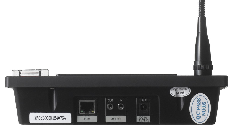 Микрофонная консоль имеет цветной сенсорный дисплей с диагональю экрана 4,3" и при наличии интуитивно понятного интерфейса, позволяет отображать состояние системы и при нажатии в одно касание выбрать зону или группы зон для трансляции звуковых сигналов с данного рабочего места. Пиктограммы экрана могут быть легко настроены на конкретные задачи пользователя. Уникальная конструкция данной консоли позволяет её встраивать на поверхность плоскостей, для этого опционально используется установочный бокс.