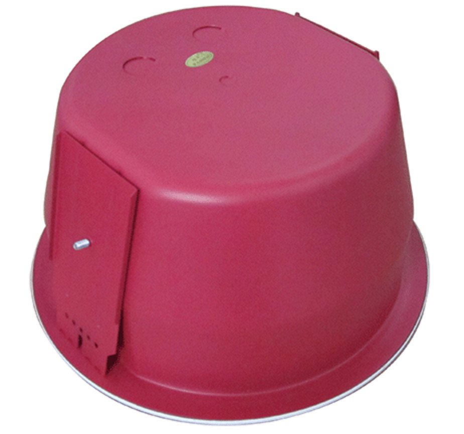 Материал корпуса сталь, защитная решётка динамика металлическая, белого цвета (RAL 9003), металлический защитный колпак красного цвета (RAL 3000).