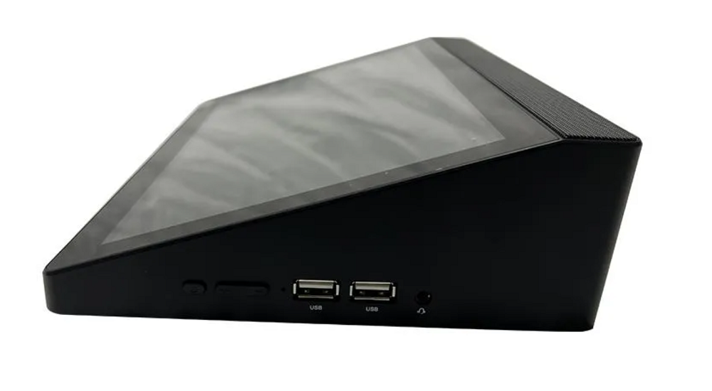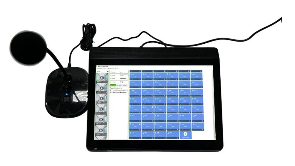 Микрофонная станция построена на базе мощного планшетного компьютера со следующим оснащением: центральный процессор Intel Apollo Lake (1,10 ГГц ~ 2,20 ГГц); графический процессор Intel HD Graphics 500; операционная система Windows 10, оперативная память (ОЗУ) 4 Гб, встроенная память (ПЗУ) 64 Гб, сенсорный дисплей с IPS-матрицей диагональю 13.25 дюйма (разрешение 1280х800px, угол обзора 178°). Интуитивно-понятный интерфейс с возможностью удаленного управления через ПО PA System. Помимо описанных функций, консоль оснащена медиаплеером, который дает возможность воспроизводить MP3-файлы расположенные на USB-носителе и карте памяти формата microSD (есть слоты) или потоковое аудио получаемое от FTP-сервера, а также профессиональных стриминговых сервисов (Яндекс.Музыка, Spotify и т.п.).
