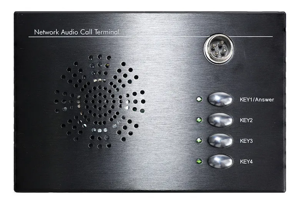 На лицевой панели размещен разъем для подключения микрофона типа гусиная шея (в комплекте) и 4 кнопки для выбора локации, куда будет вестись вещание. Поддерживает двусторонний тип связи и позволяет оператору/диспетчеру поговорить с абонентом, в том числе когда происходит обращение с его стороны ("звонок" на консоль). Для этого предусмотрена кнопка ответа + динамик громкой связи со встроенным усилителем мощностью 5 Вт.