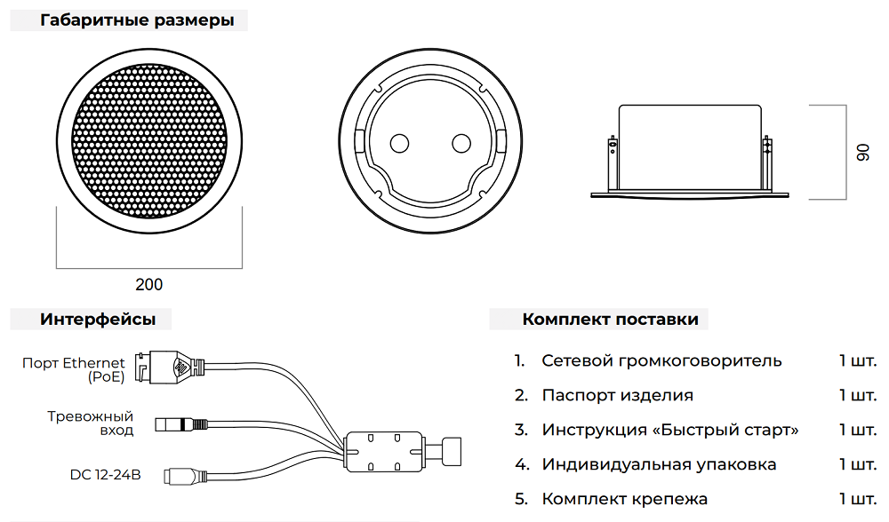| Тип устройства | Комплект потолочных IP-громкоговорителей: ведущий + ведомый |