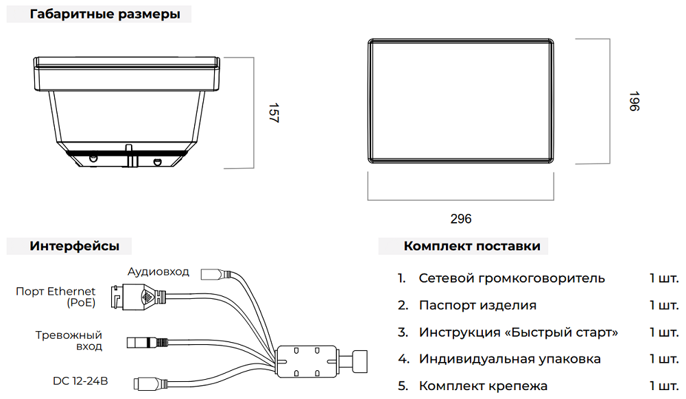 | Тип устройства | Настенный IP-громкоговоритель с микрофоном |