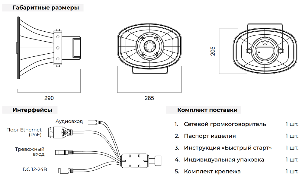 | Тип устройства | Всепогодный рупорный IP-громкоговоритель с микрофоном |