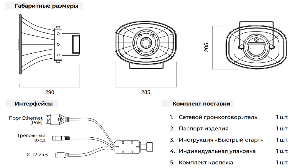 | Тип устройства | Всепогодный рупорный IP-громкоговоритель |