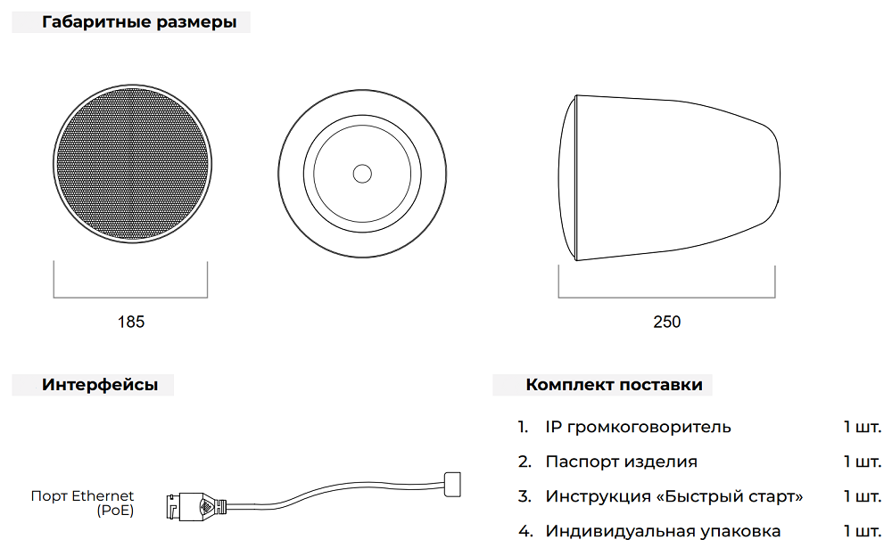 | Тип устройства | Подвесной IP-громкоговоритель с микрофоном для помещений с высокими потолками |