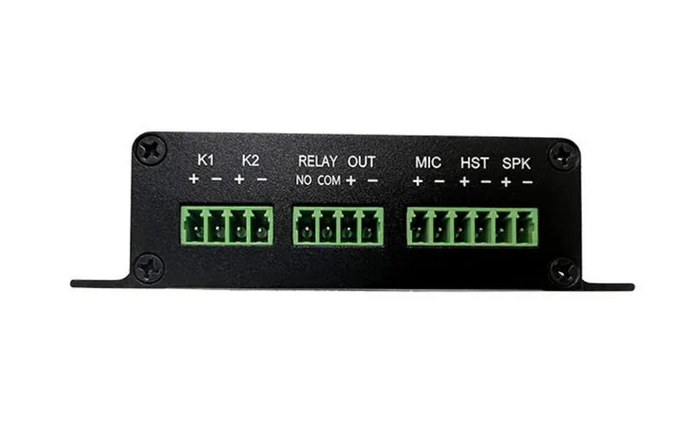 Помимо уже упомянутых микрофонного входа и выхода на акустику, адаптер оснащен следующими коннекторами: 1 линейный аудиовыход (наушники/гарнитура), 2 тревожных входа GPIO, 1 тревожный выход GPIO, а также релейным выходом для управления внешним исполнительным устройством. По управляющим сигналам на тревожные входы запускаются предзаписанные в память файлы (сообщения или звуковые сигналы), аналоговую акустику подключенную к преобразователю можно применять в системах тревожного оповещения.