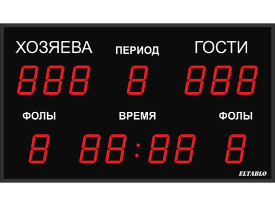 | Выводимая информация: | Счёт, игровое время, период и фолы |