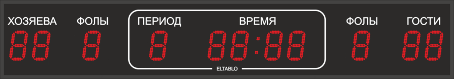 | Выводимая информация: | Счёт, игровое время, период, фолы, а также заранее запрограммированный текст |