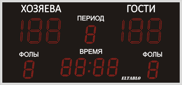 | Выводимая информация: | Счёт, игровое время, период и фолы |