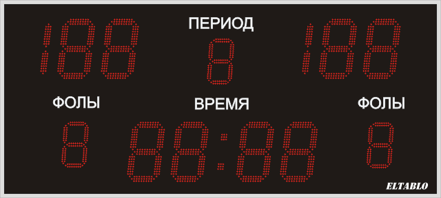 | Выводимая информация: | Счёт, игровое время, период, фолы |