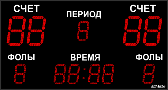 | Выводимая информация: | Счёт, игровое время, период и фолы |