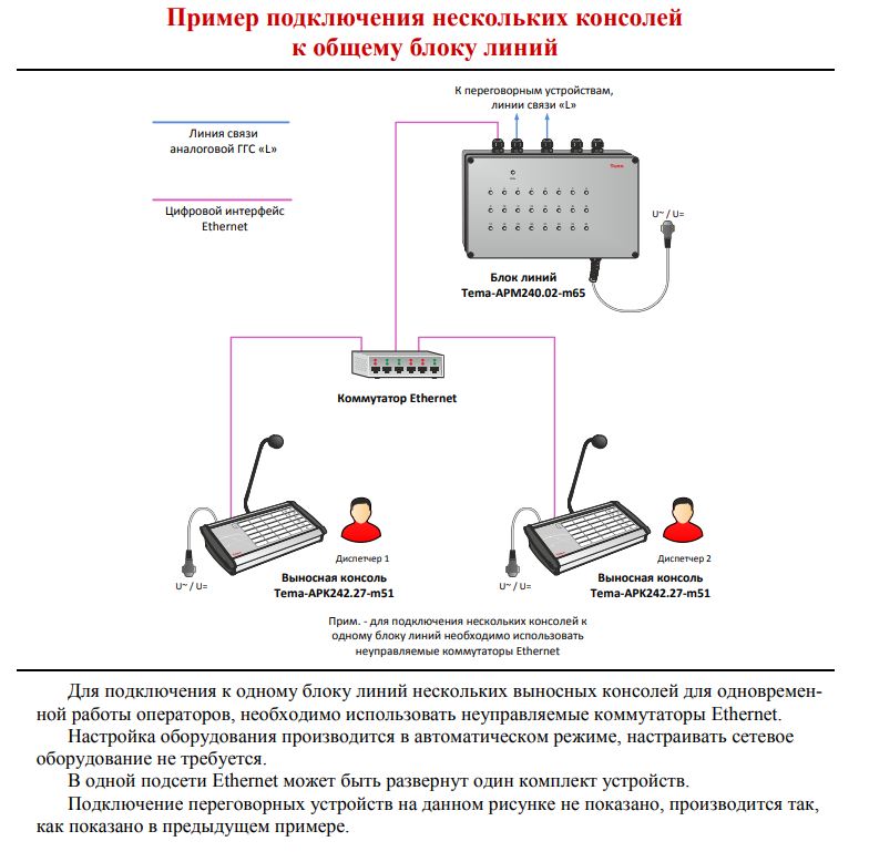 | Тип устройства | Диспетчерский пульт с внешним блоком линий |