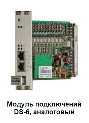 Модуль подключений DS-6 применяется в качестве адаптера/интерфейса для подключения аналоговых переговорных устройств, усилителей и аналоговых оконечных приборов к децентрализованной коммуникационной системе DS-6.