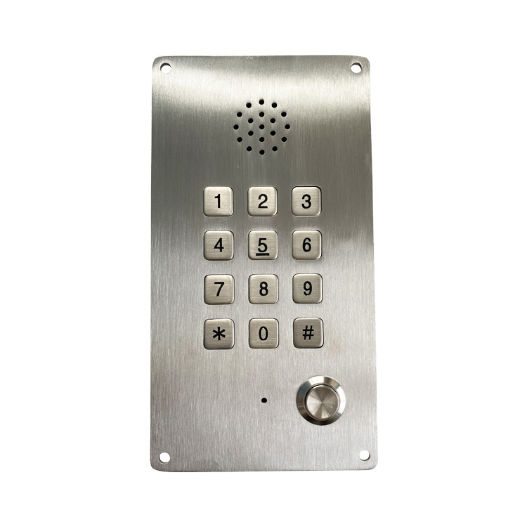 Аналоговый интерком применяется в стандартных телефонных сетях, подключение производится кабелем с разъемом RJ11 (поставляется в комплекте). Полноценный номеронабиратель на 12 кнопок позволяет осуществлять вызов на любой телефонный номер, вместо трубки предусмотрен 1 динамик громкой связи и кнопка активации. Слышимость звонка остается хорошей даже в условиях повышенных фоновых шумов. Частотный диапазон встроенного микрофона 250 – 3000 Гц, громкость входящего вызова не менее 80 дБ. Помехоустойчивость высокого уровня.