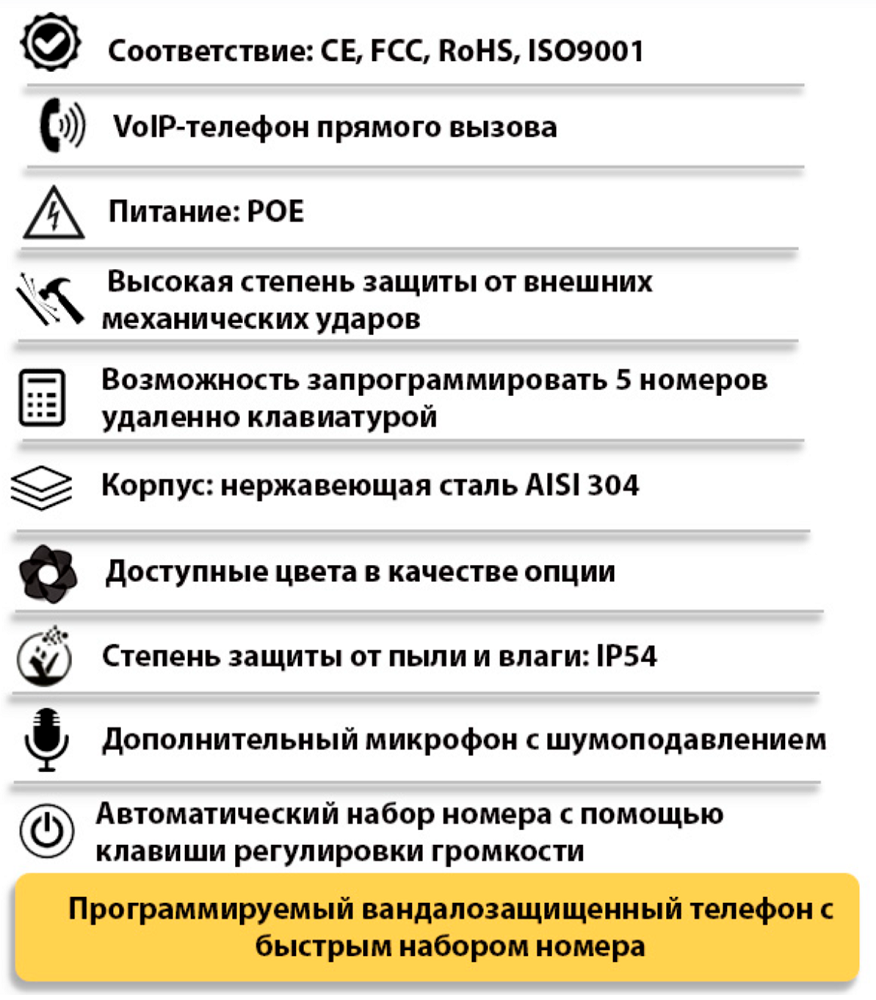 | Тип изделия | Антивандальный IP-телефонный аппарат прямого вызова, для исправительных учреждений |