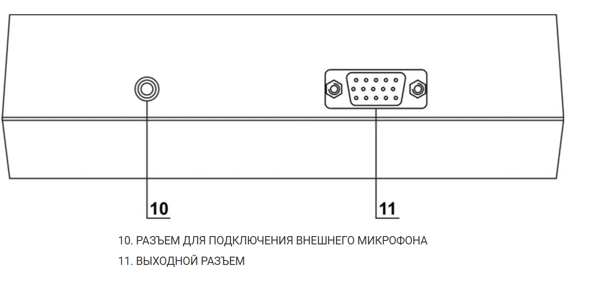 • Разъем для подключения выносного микрофона, что позволяет расширить функциональность устройства.