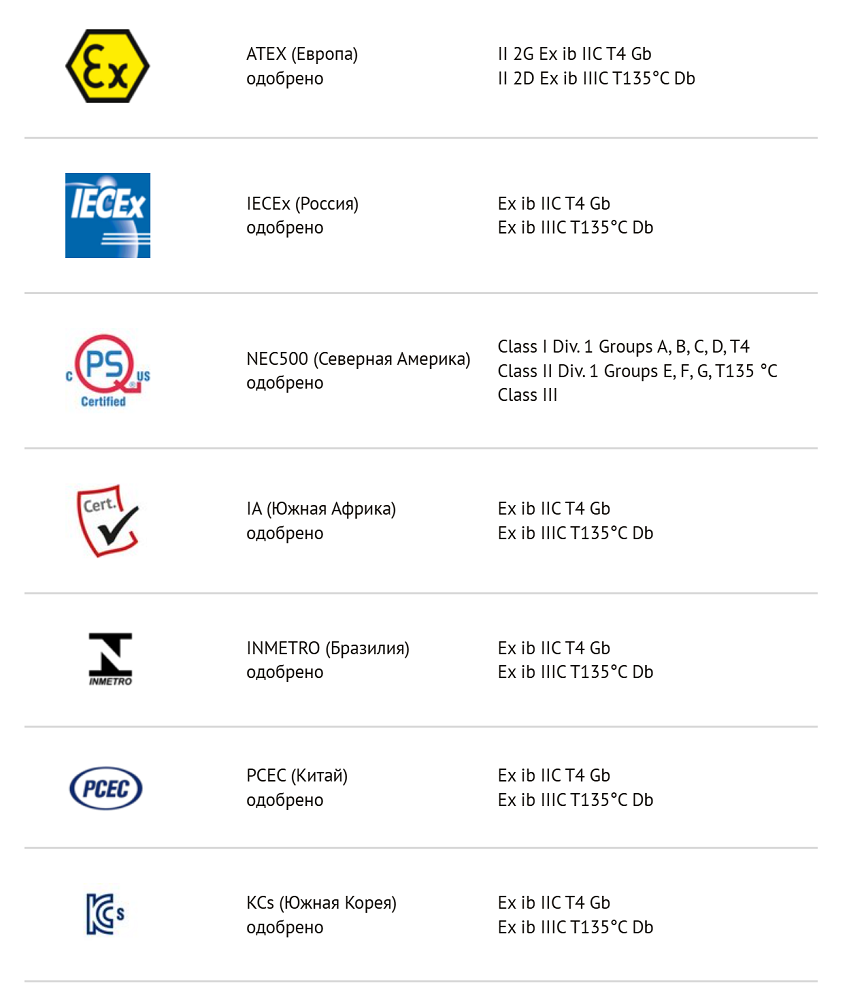 | Взрывоопасные зоны | 1 по газу и 21 по пыли |