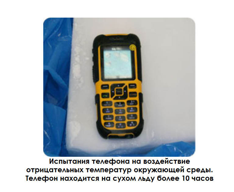Конструктивно телефон выполнен с защитой от попадания влаги и пыли, степень защиты IP 54 ( при использовании переносного кейса IP67), достигается это применением современного композитного материала не подверженного перепадам температуры на основе резины и пластика, а также технологией underfil герметизацией и упрочнением швов.