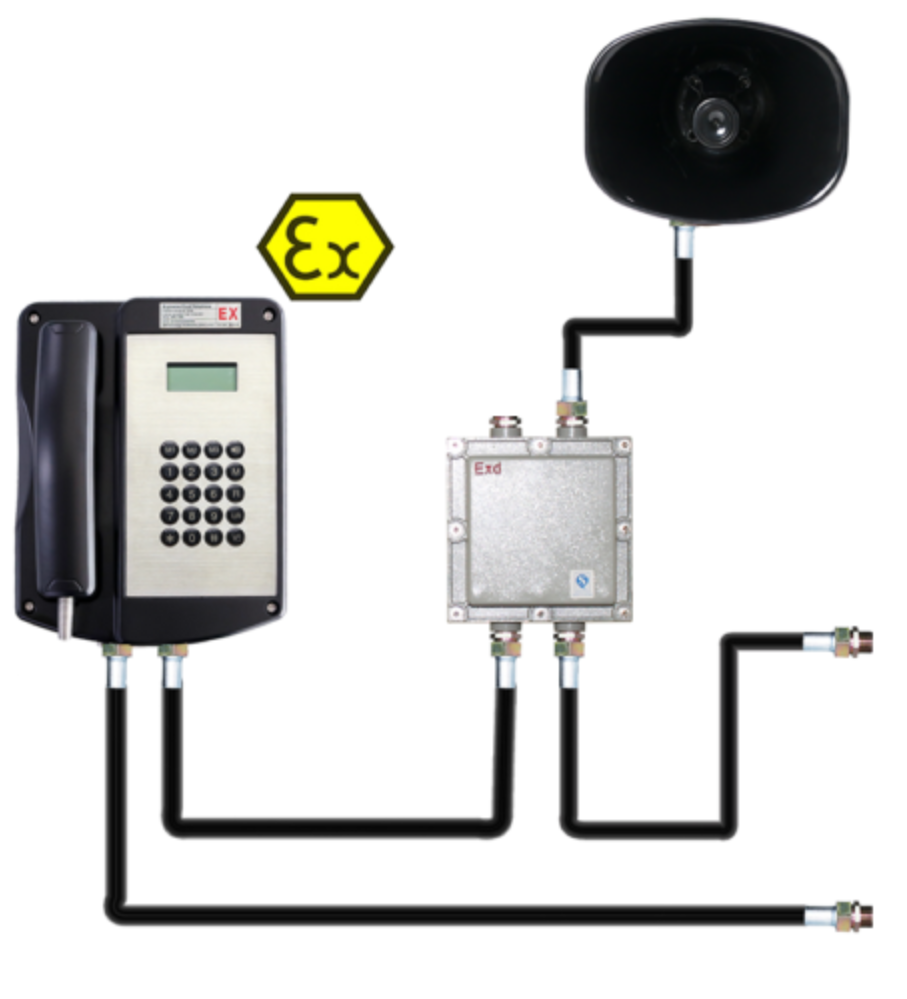 • Питание: От аналоговой телефонной линии; внешний громкоговоритель запитан от взрывозащищенной коробки