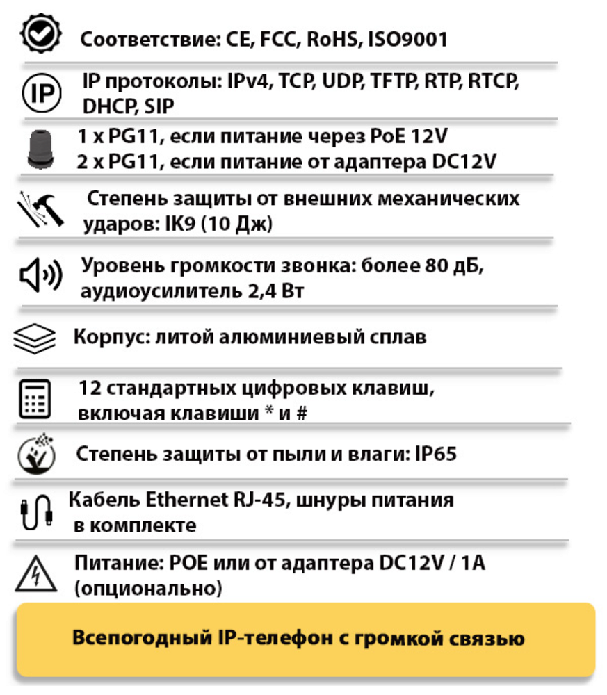 | Тип изделия | Промышленный всепогодный IP-телефонный аппарат |