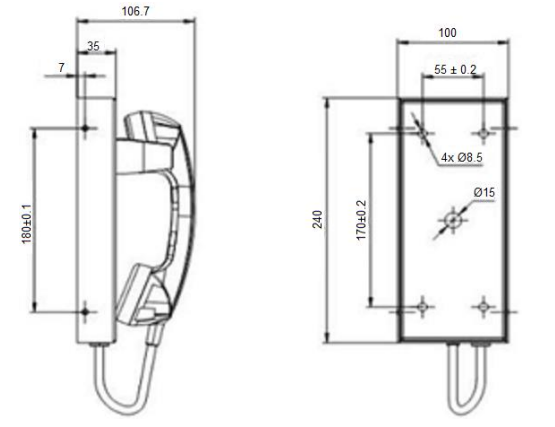 | Тип изделия | Промышленный всепогодный аналоговый телефонный аппарат прямого дозвона |