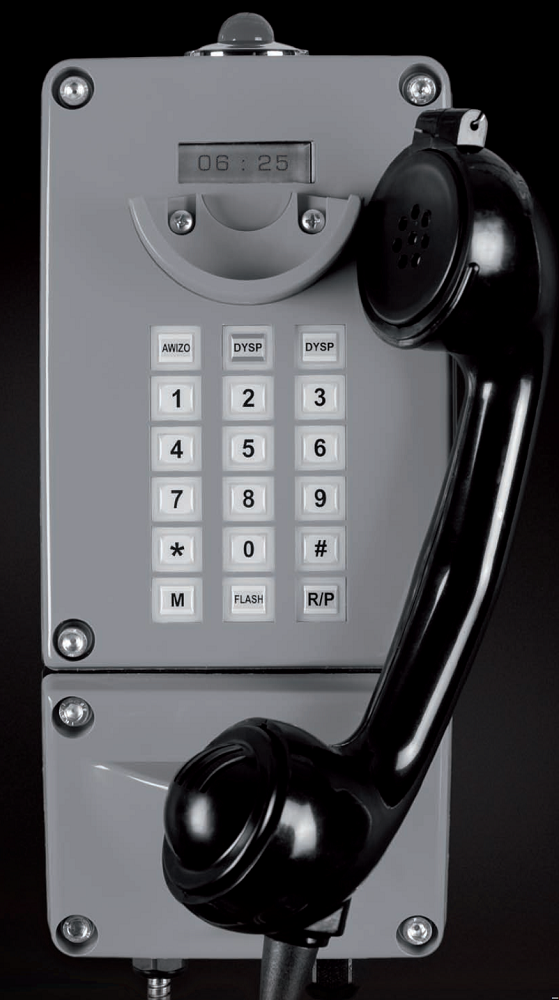 Работает с любой АТС, которая поддерживает тональный набор номера DTMF или импульсный PM. Телефон оснащен полноценным номеронабирателем для осуществления звонков на любой номер. Помимо стандартных двенадцати кнопок (9 цифр, решетка и звездочка), клавиатура включает в себя следующие служебные клавиши: две кнопки DYSP (диспетчер), автоматический звонок на заранее заданные номера; кнопка AWIZO (вызов оператора АТС), автоматический звонок на заранее заданный номер; кнопка повтора последнего вызова; служебные кнопки для программирования - позволяют записать в память до 10 номеров и назначить звонок на них по нажатию любой из кнопок. Вызов сопровождается звонком через динамик, громкостью не менее 90 дБ, и дублируется световым сигналом (дополнительная опция).